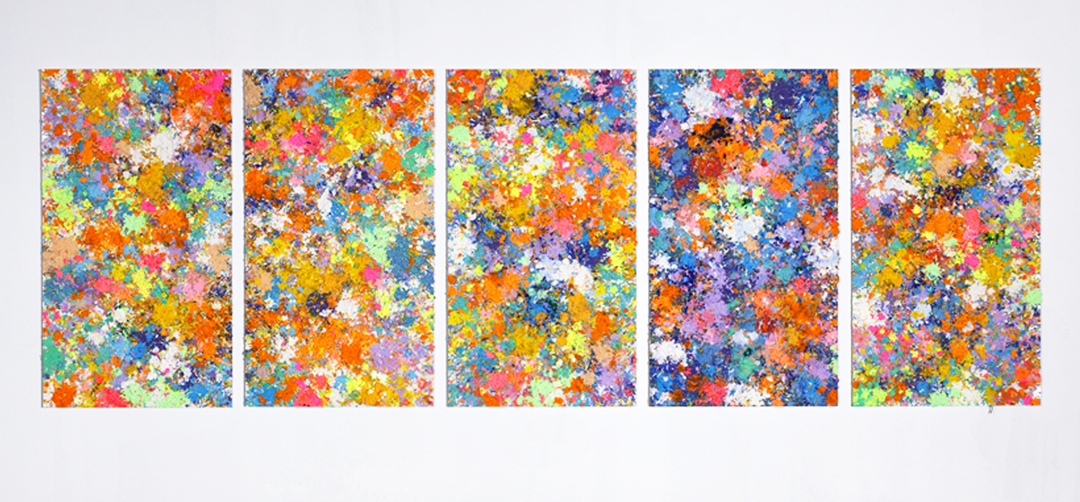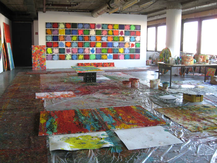 in Form von Spritzern (Splashes) auf die Leinwand.