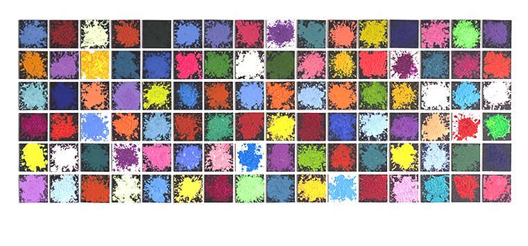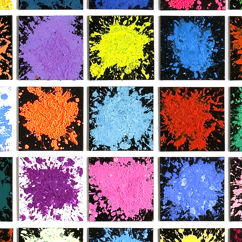 Die Installation besteht aus 96 Leinwänden (30 x 30 cm)