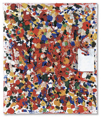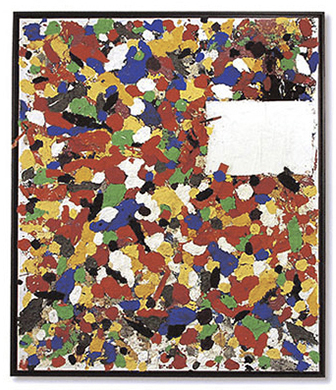 weil ihm alles zu ausgeklügelt wurde, aus weiter Entfernung Farbbrei auf die Leinwand warf,