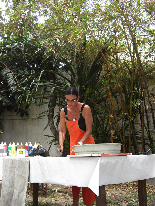 erhebt. Die tief braune und schwarze Vulkanasche wurde zu einem Gestaltungsmittel, das ihr einen neuen Raum öffnete....